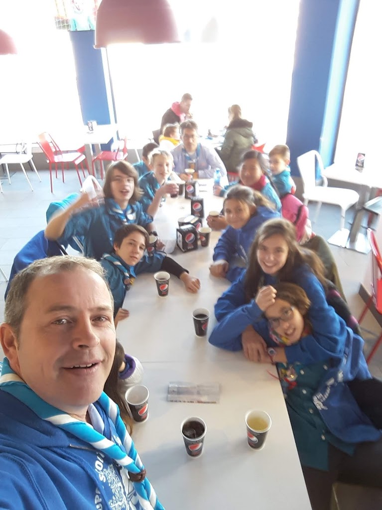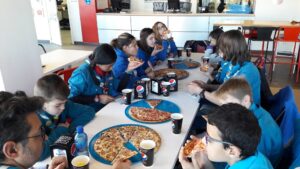 Después de recoger todo, tocaba celebrar la misión y reponer fuerzas en una pizzería. !Que barbaridad como comen estos exploradores¡